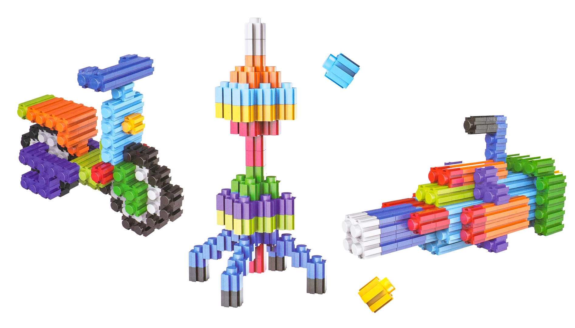 - Krāsaini, modulāri elementi daudzveidīgu 3D modeļu būvēšanai