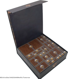 Tajā cita starpā atradīsiet: iepirkumu somu, piespraudi, zeķes (īsbiksīšu un klasiskās), akrila dekoru, uzlīmi, acu masku, austu uzšuvumu, paliktni, aproci, pildspalvu, jojo, bagāžas birku, maisiņu ar aukliņu, tīrīšanas lupatiņu, šalli, atslēgu piekariņu, lēcveida nozīmīti, monētu maku, Zoro auskarus, magnētu, mīksto vāku piezīmju kladi, kakla siksniņu/turētāju ūdens pudelei un piekariņu piezīmēm.