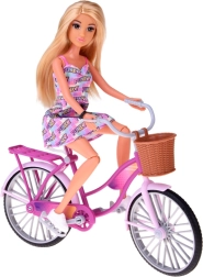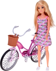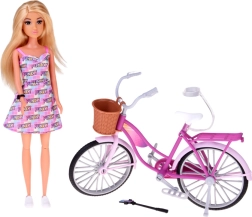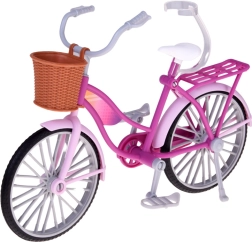 Rozā–violets velosipēds ar priekšējo groziņu, aizmugurējo bagāžnieku, pedāļiem un spieķotiem riteņiem brīvi ripo un ir viegli vadāms. Sēdeklis ar turētāju notur lelli stabili “brauciena” laikā.