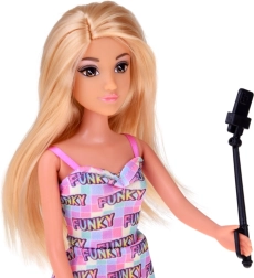 Lellei ir artikulēti ceļgali un elkoņi, tāpēc tā viegli pozē braukšanai, fotografēšanai un citām ainām. Moderno FUNKY kleitu un baltās kedas papildina stilīgs aksesuārs – viedpulkstenis.