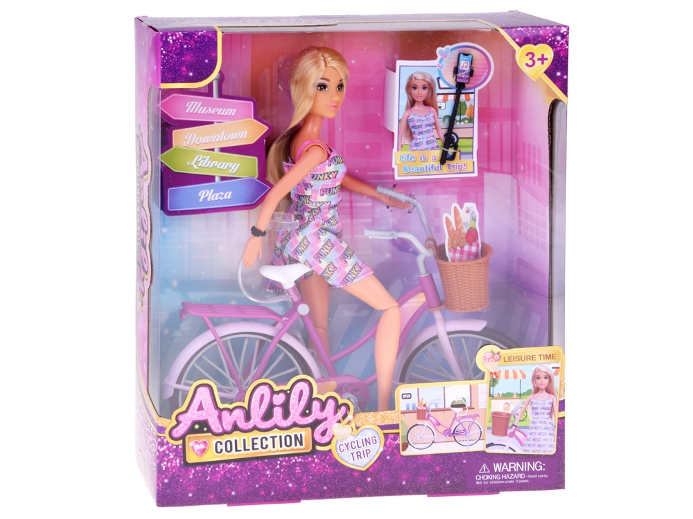 Atklājiet fantāzijas pasauli ar ANLILY lelli, kurai patīk izbraucieni pa parkiem un pilsētas ieliņām. Pateicoties artikulētām ekstremitātēm, tā viegli ieņem braukšanas un selfiju pozas, bet tās košā kleita ar uzrakstu FUNKY izceļ modernu stilu. Komplektā ir detalizēti izstrādāts velosipēds pasteļtoņos plūdenai braukšanai un stabilai lelles sēdēšanai.