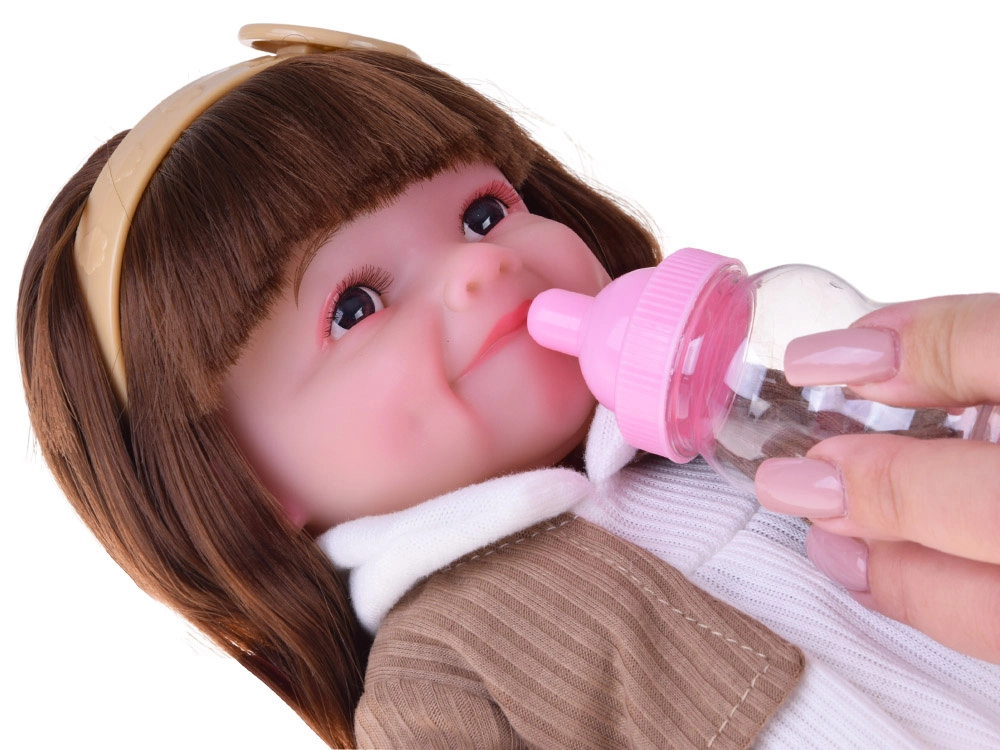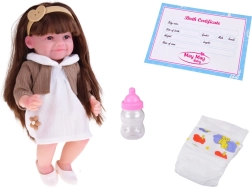 Iepakojumā ir pudelīte, autiņš un dzimšanas apliecība. Bērni var barot, pārtīt un rūpēties par “mazuli” kā īstenībā.