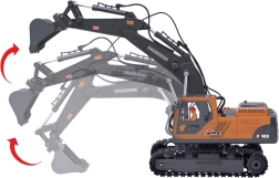 Pārvērt istabu par būvlaukumu ar realistisku RC ekskavatoru 3‑in‑1. Tas piedāvā 360° rotējošu kabīni, gumijas kāpurķēdes drošai saķerei, nomaināmus uzgaļus (kauss, satvērējs, āmurs) un plūdenu 2,4 GHz vadību ar gaismas un skaņas efektiem, kurus var izslēgt. Ideāla rotaļlieta mazajiem būvniekiem gan mājās, gan ārā.