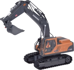 Realistisks kāpurķēžu ekskavators ar tālvadību sniedz bērniem autentisku būvlaukuma pieredzi. 360° rotējoša virsbūve, locījama strēle un funkcionāli instrumenti ļauj rakt, iekraut un satvert. Pateicoties gumijas kāpurķēdēm, tas droši pārvietojas pa dažādām virsmām, bet 2,4 GHz pults nodrošina plūdenu un netraucētu vadību.