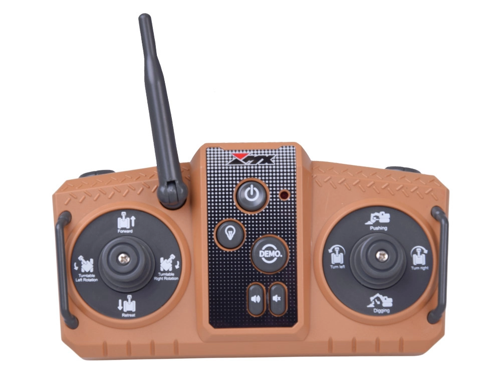 Divu joysticku pults nodrošina precīzu kāpurķēžu vadību, kabīnes rotāciju un strēles kustības. DEMO funkcija visu parāda ar vienu pieskārienu.