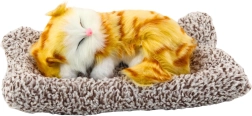Guļošs kaķēns uz spilvena izskatās pavisam īsts – maiga kažoka imitācija, maigs skatienis un mierīga poza veido mājīgu dekoru bērnistabai, viesistabai vai birojam. Reālistiskas detaļas rudzbrūnos toņos ar baltiem akcentiem piesaista uzmanību uzreiz.