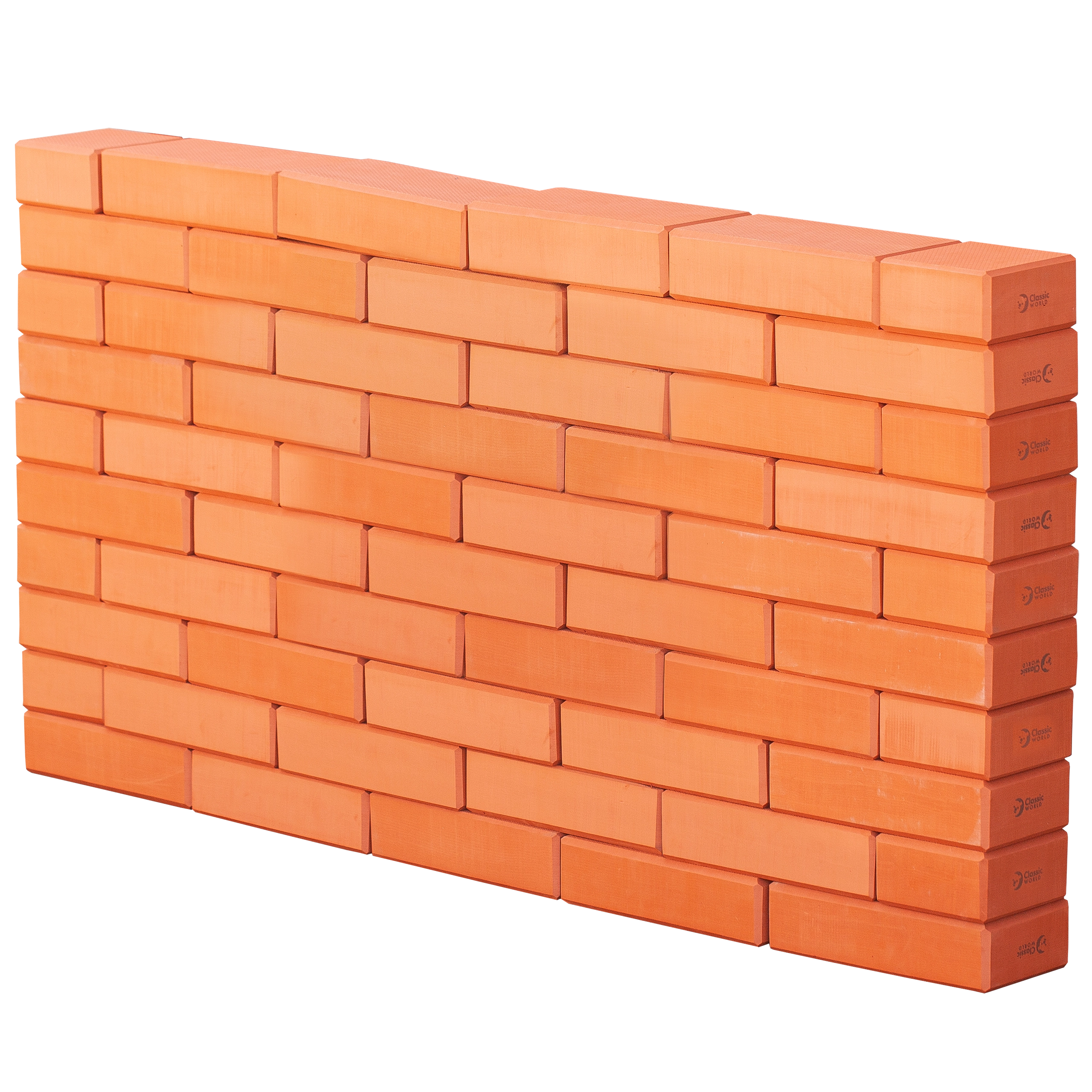 Komplektā ir 90 gabali: 70 pilnie ķieģelīši un 20 pusķieģelīši oranži-sarkanā tonī. Pateicoties mīkstajam EVA materiālam, bloki ir viegli, patīkami taustei un saudzīgi bērnu rokām, vienlaikus pietiekami stingri, lai būvētu sienas, mājiņas un cietokšņus. Bērni var kopīgi plānot un būvēt, tā attīstot sadarbību un komunikācijas prasmes.