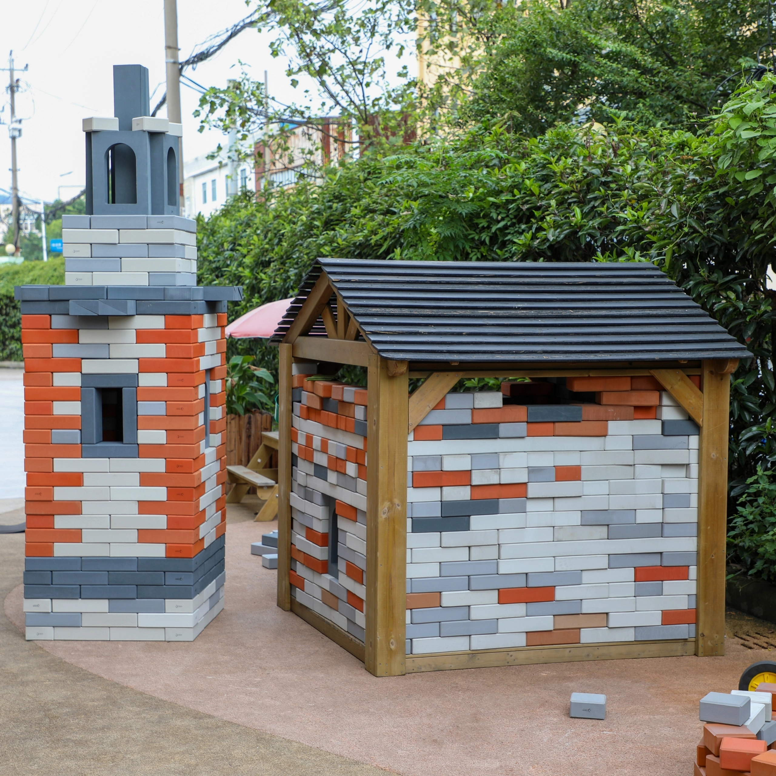 Spēlēšanās ar ķieģelīšiem veicina sīko motoriku, radošumu, iztēli, telpisko uztveri un pacietību. Komplekts ir lielisks papildinājums bērnu mājiņām vai lapenēm, un pateicoties izturīgajam izpildījumam, tas der arī dārzam vai rotaļu laukumam. Mājiņa nav iekļauta iepakojumā.