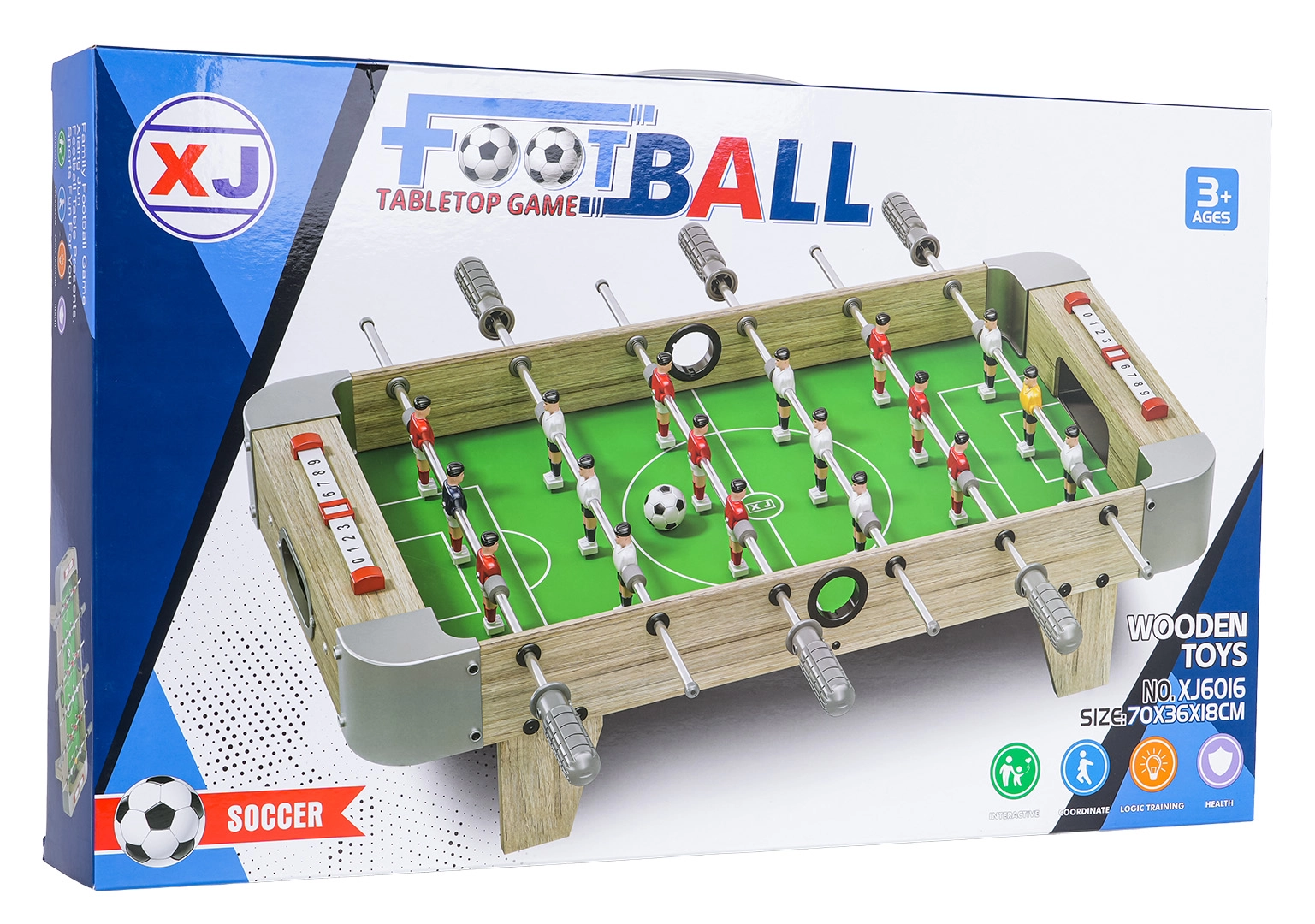 Šis galda futbols apvieno kompaktus izmērus ar izturīgu izpildījumu, tāpēc tas der uz jebkura galda un to var paņemt līdzi jebkur. Zaļš laukums ar skaidru marķējumu, reālistiskas spēlētāju figūriņas un vienmērīgi metāla stieņi nodrošina dinamisku un godīgu spēli.