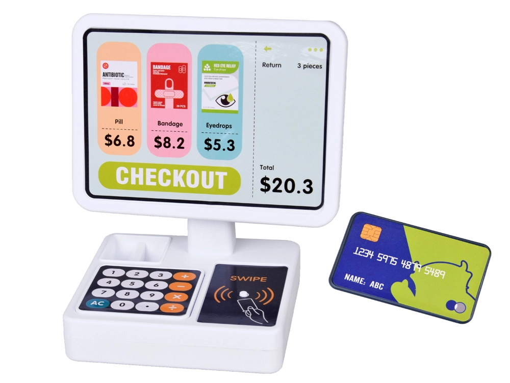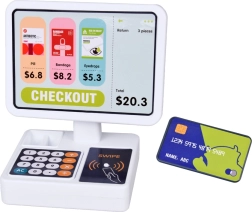 Bērni var trenēt norēķinus ar karti un skaidrā naudā. Displejs, pogas un karšu lasītājs ar skaņām piešķir spēlei reālistisku noskaņu un izglītojošu jautrību.