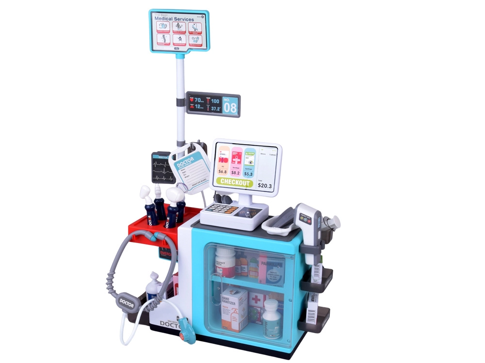 Šis interaktīvais komplekts pārvērš bērnu istabu par mazu ordināciju, ambulanci un aptieku. Bērni var izmeklēt pacientus, mērīt temperatūru, “izrakstīt zāles” un trenēt norēķinus pie kases. Reālistiskās skaņas un pārskatāma stacija ar skapīšiem piešķir autentiskumu un padara spēli aizraujošu.