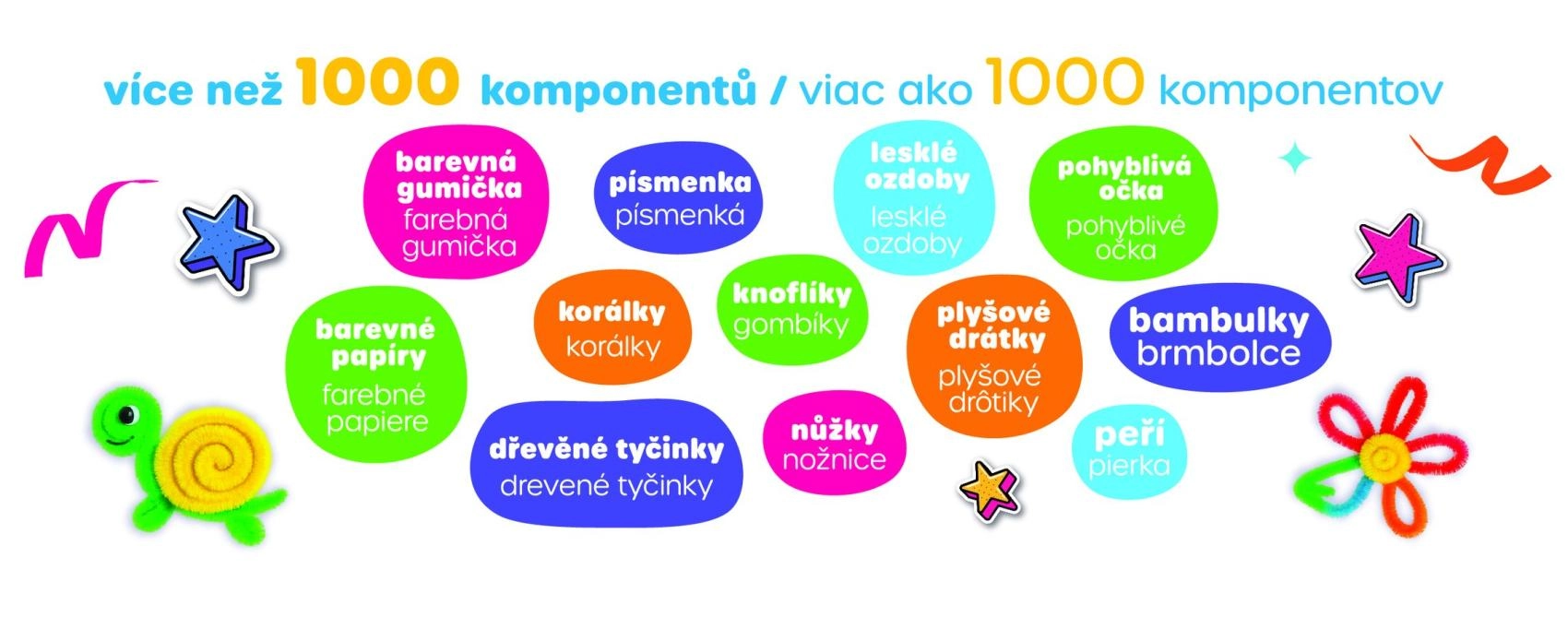 Piemērots DIY projektiem, radošiem mirkļiem un kopīgai darbošanai ar vecākiem. Krāsainās putu formas, pūkainās stieplītes, pom‑pom bumbiņas, krellītes un uzlīmes aicina eksperimentēt un rotaļāties. Kaste ar rokturi nodrošina ērtu pārnēsāšanu un drošu glabāšanu.