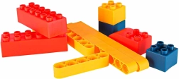Dzeltenās sijas un stiprinājumi ar atverēm tapām un asīm nodrošina stabilas konstrukcijas, braucamrīkus un rāmju modeļus, kas iztur biežu spēlēšanos.