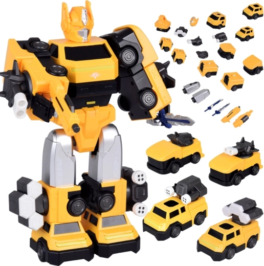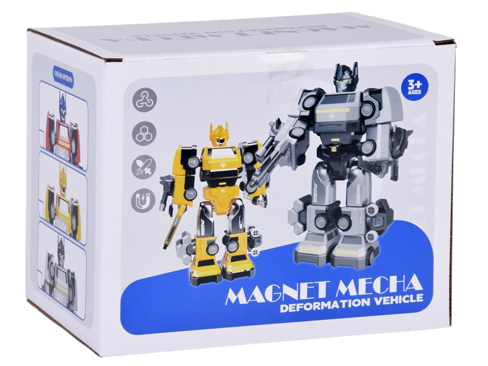 Šis futūristiskais magnētiskais transformators izceļas ar košu dzelteni-melnu krāsojumu un izturīgu izpildījumu. Pateicoties spēcīgiem magnētiskajiem savienotājiem, bērni ātri pārbūvēs robotu un izveidos savas varonīgās ainas. LED apgaismojums apakšdaļā piešķir darbībai reālistisku noskaņu.