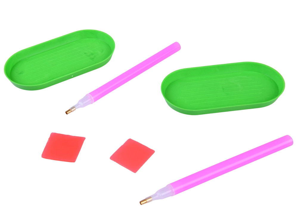 Paliktņi šķirošanai, aplikatori, vasks, savienojuma gredzeni un bagātīga akmentiņu krājuma — darināšanu var sākt uzreiz pēc atvēršanas.