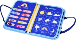 Praktiska sausdzēšamā tāfele ar 4 krāsainiem flomāsteriem atbalsta zīmēšanu, rakstīšanu un rakstu vingrināšanu, savukārt lapas ar laikapstākļiem, kalendāru un pulksteni māca bērniem saprast laiku un dienas ritmu. Viss ir mīksts, viegls un drošs – ideāli mājās, automašīnā un izbraucienos.