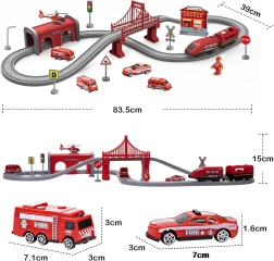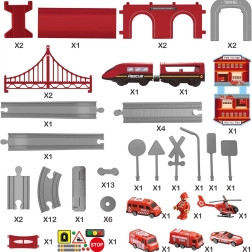 Komplektā ir arī ugunsdzēsēju stacija ar ugunsdzēsēja figūriņu un glābšanas transportlīdzekļi, kas papildina stāstus par izsaukumiem uz trases un pilsētā. Pateicoties daudzajām detaļām, iespējams veidot pārskatāmus apļus un daudzlīmeņu trases ar tilta konstrukciju.