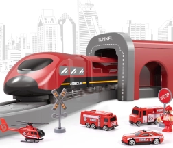 Uzbūvējiet savu glābēju pilsētu ar tiltu, tuneli, staciju un ceļa zīmēm. Vilciens ar elektrisko piedziņu viegli velk vagonus, pateicoties magnētiskajām sakabēm, un bērni izbaudīs reālistiskas skaņas, braucot pa dažādas formas sliedēm.