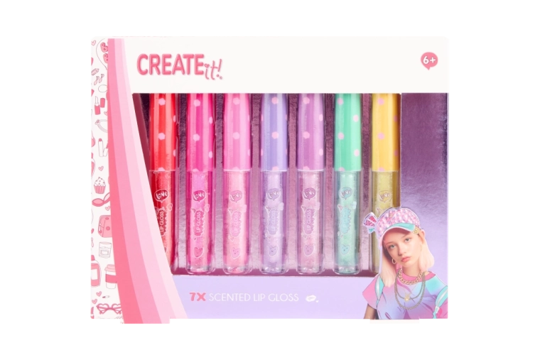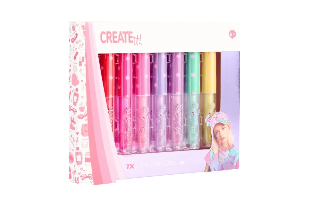 Atklājiet rotaļīgu 7 smaržīgu lūpu spīdumu CREATE IT! komplektu, kas piešķir jūsu lūpām mirdzošu spīdumu, smalkas dzirkstis un patīkamu aromātu. Katrai tūbiņai ir atšķirīgs tonis un aromāts, tāpēc viegli atradīsiet krāsu jebkuram noskaņojumam. Ideāli kā dāvana vai dalīšanai ar draudzenēm.
