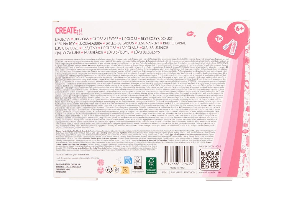 CREATE IT! komplektā ir septiņi krāsaini lūpu spīdumi ar mirdzošu finišu, kas skaisti izgaismo lūpas un piešķir tām maigu krāsas pieskārienu. Vieglā tekstūra viegli klājas un ir piemērota ikdienas grimam. Katram spīdumam ir atšķirīga smarža, tāpēc atlase būs gan radoša, gan jautra.