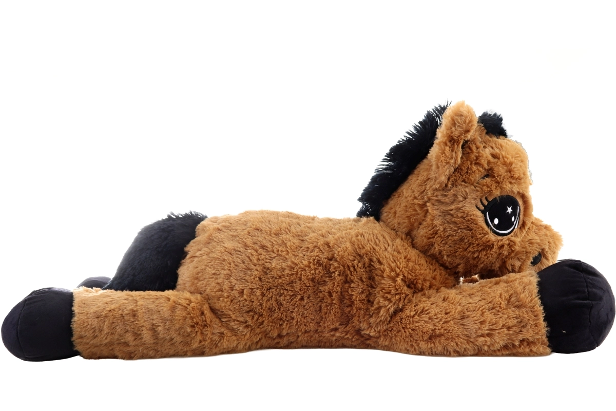 Šis brūnais guļošais plīša zirgs iepriecina jau pirmajā pieskārienā. Tam ir lielas izšūtas acis, mīksta krēpe un aste, un tas kalpo kā mīļš draugs un ērts atbalsts lasīšanas vai pasaku skatīšanās laikā. Izmēri 80 × 32 × 25 cm garantē pietiekami daudz vietas apskāvieniem un atpūtai.