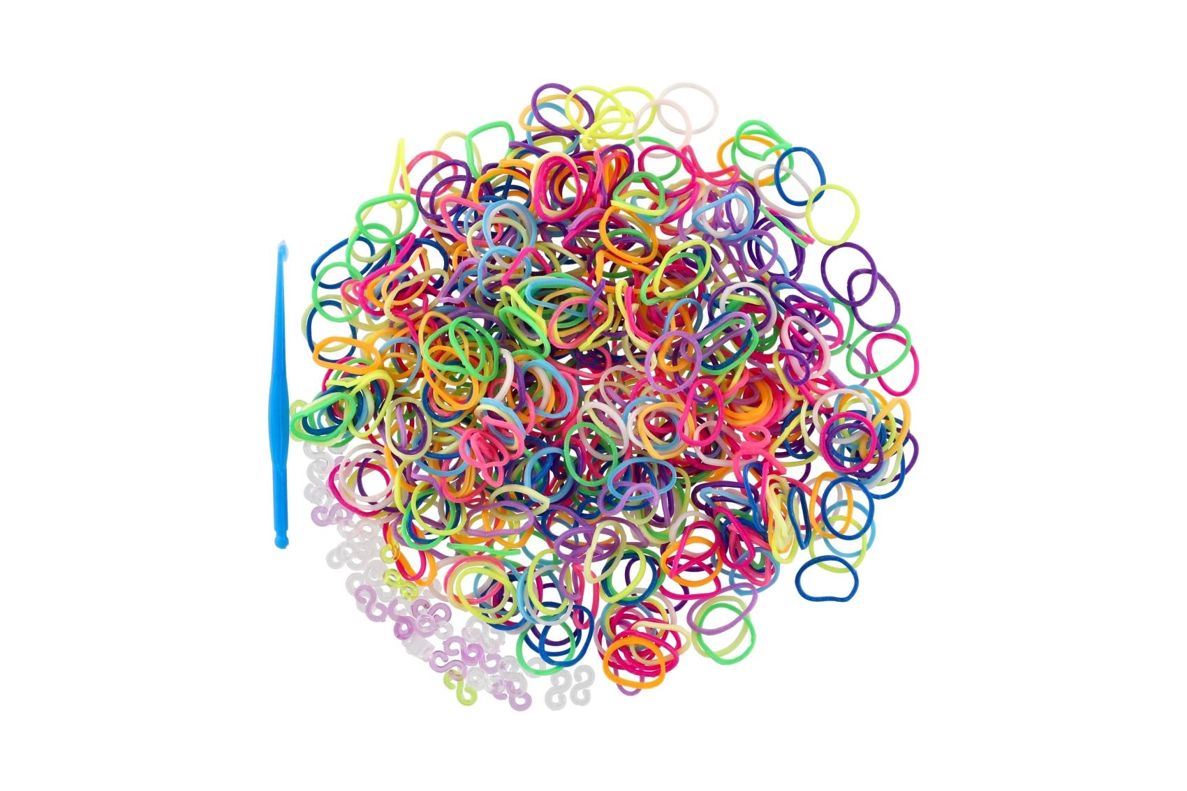 Izgatavo oriģinālas aproces, gredzenus un piekariņus ar šo pilno gumiju pīšanas komplektu. Iepakojumā ietilpst 600 krāsainas gumijas, pīšanas āķis un 24 S veida stiprinājumi ērtai aizdares nostiprināšanai. Vienkārša lietošana un neierobežotas radošās iespējas iepriecinās gan bērnus, gan pieaugušos.