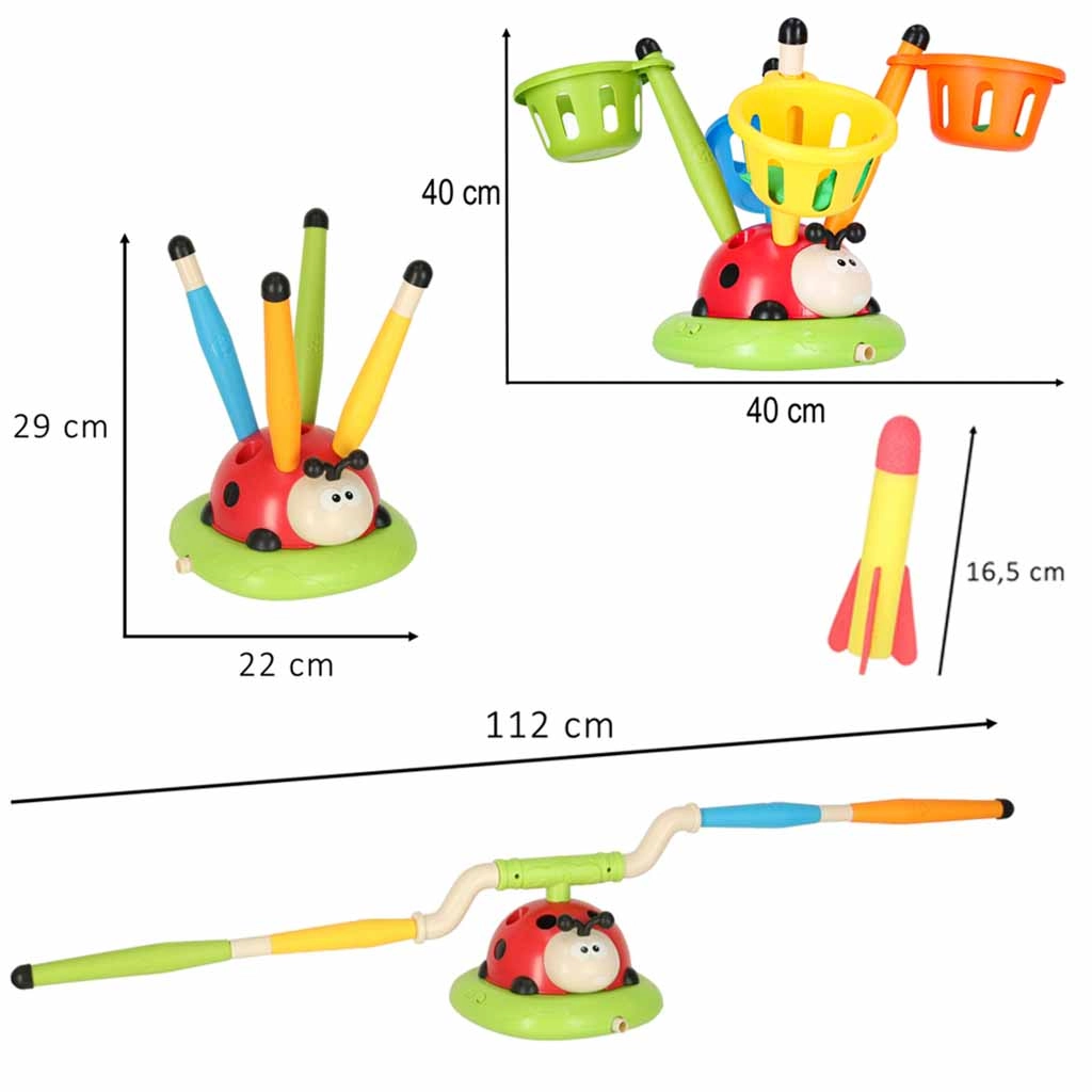 Spēle, kas neļauj sēdēt mierā: rotējošais lecamšķērslis trenē reakciju, gaisa palaidējs paceļ raķetes augstu gaisā, bet mērķa mešana piešķir sportiskas sacensības garšu. Interaktīvā mārīte ar gaismām un skaņām motivē kustēties un ik katru raundu pārvērš jaunā izaicinājumā.