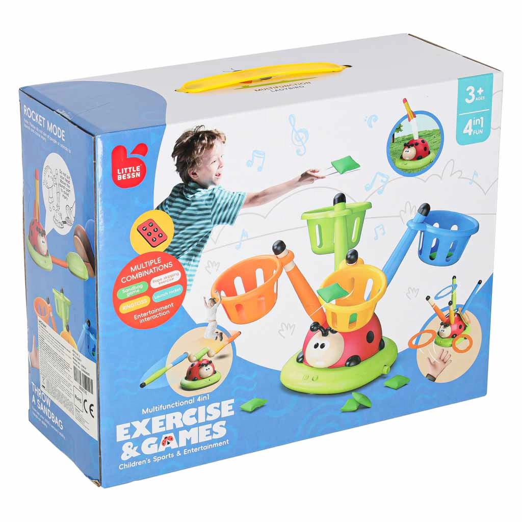 Šī multifunkcionālā interaktīvā mārīte 4 vienā aizraus bērnus ar kustību un izklaidi: griež lecamšķērsli, spīd un izdod skaņas, darbojas kā raķešu palaidējs un piedāvā mērķa mešanu. Lieliski piemērota koordinācijas attīstīšanai, refleksu un precizitātes trenēšanai gan mājās, gan ārā – bērni izbaudīs aktīvu izklaidi gan vienatnē, gan grupā.