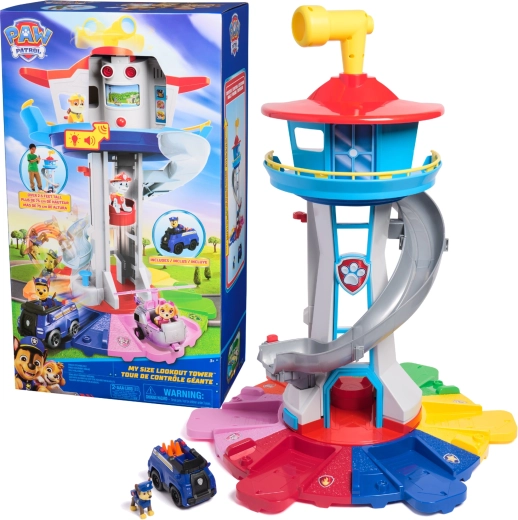 Izmēģiniet piedzīvojumus kā filmā ar vairāk nekā 81 cm augsto My Size Lookout Tower torni no PAW PATROL. Bērnus aizraus gaismas un skaņas efekti, lifts, rotējošs periskops un gara slidkalniņa trase uz palaidēju. Komplektā ir Čeisa figūriņa un viņa policijas transportlīdzeklis – gatavs spēlei uzreiz pēc izsaiņošanas.