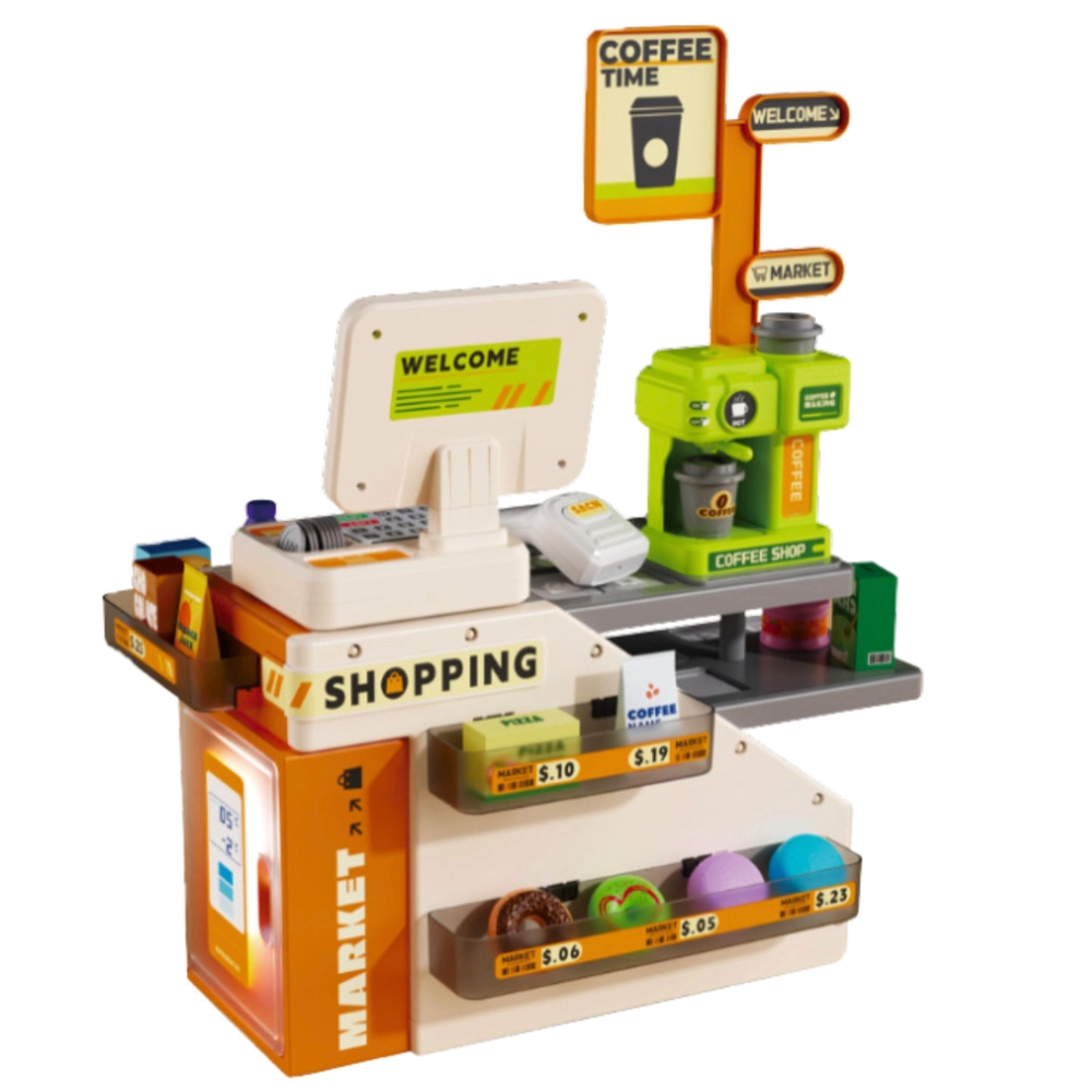 Krāsaina bērnu kase ar iebūvētu kafejnīcu piedāvā pilnvērtīgu maza pārdevēja darba vietu. Iekļauts darbojošs skeneris, liels ūdens kafijas aparāts, atverama letes daļa un ledusskapis, kā arī bagātīgs piederumu komplekts. Reālistiskie gaismas un skaņas efekti rosina fantāziju, attīsta skaitīšanas prasmes, koordināciju un lomu spēles.