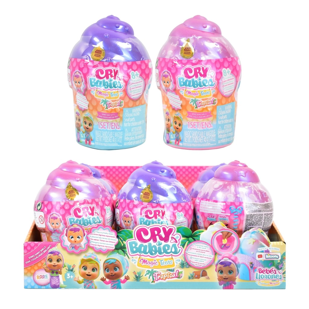 Lelle Cry Babies Magic Tears Shiny Shell sniedz bērniem izsaiņošanas prieku un fantāzijas pilnu pasauli ar aksesuāriem. Katra lelle ir paslēpta perlamutra gliemežvāka kapsulā, kas, atverot, atklāj vairāk nekā 9 pārsteigumus, kas noslēpti smiltīs. Piepildot pudelīti ar ūdeni un viegli nospiežot vēderiņu, lelle rauda putojošas asaras – iespaidīga nianse, kas veicina emocionālu rotaļu un rūpes.