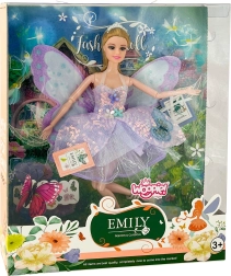 Atklājiet fantāzijas pasauli ar lelli feja Emi, kura apbur ar mirdzošiem tauriņu spārniem, violetām pasteļkrāsas kleitām un kustīgām ekstremitātēm. Eleganta kronīte, stilīgi apavi un kvalitatīvs izpildījums no drošiem materiāliem pārvērš katru rotaļu burvīgā stāstā – lieliska ideja dāvanai.
