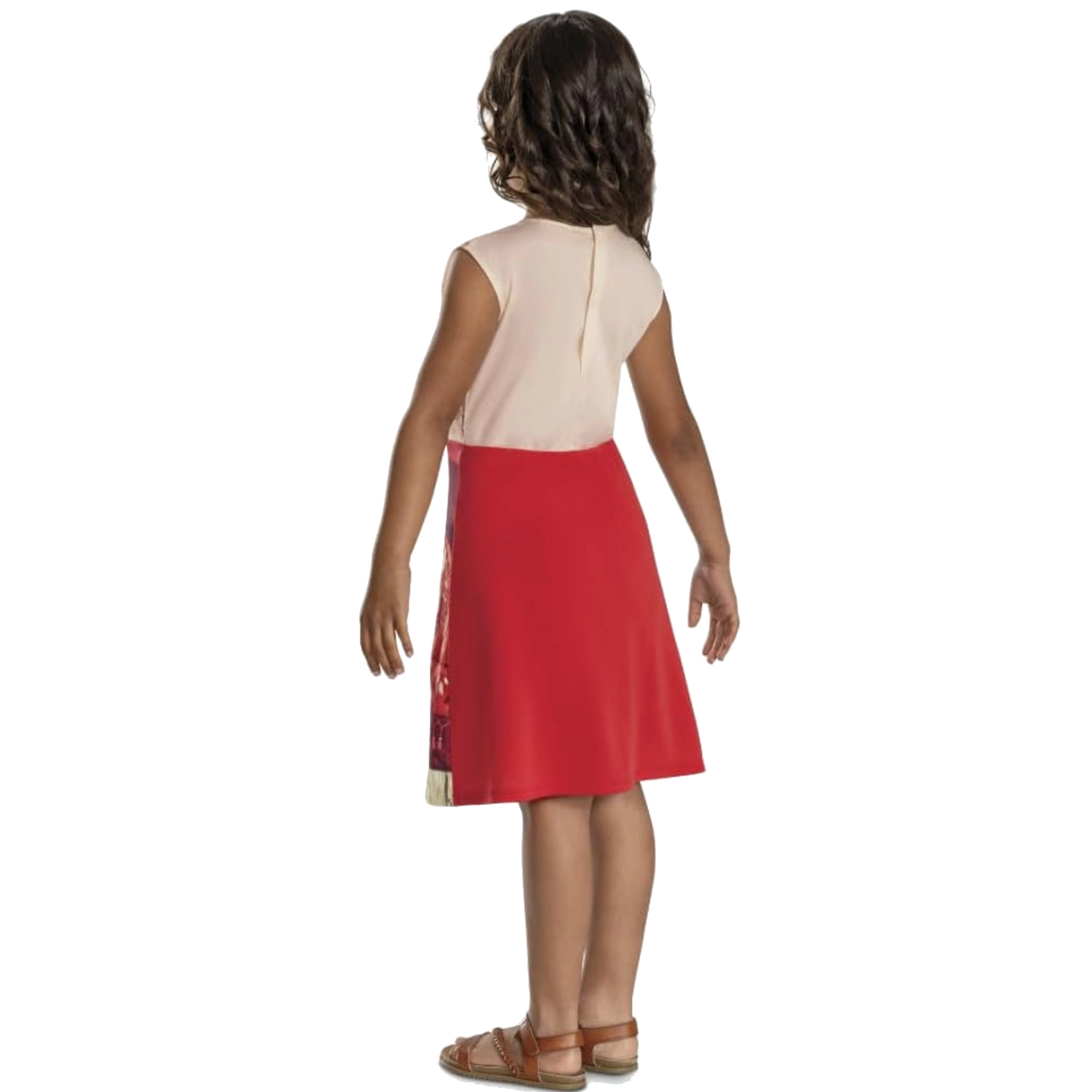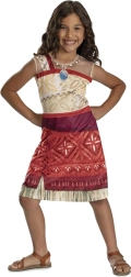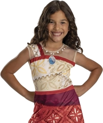 Apburiet mazos Disney pasaku fanus ar stilīgu kostīmu, kas iedvesmots no varones Vaianas (Moanas). Viegls, ērts kleitu komplekts sarkanīgi krēmīgos toņos ar Polinēzijas motīviem un integrētu “kaklarotu” ar zilu piekariņu ir ideāli piemērots karnevālam, masku ballēm un mājas pārģērbšanās spēlēm. Pateicoties kvalitatīvam 100% poliestera materiālam, to ir viegli uzvilkt un tas labi saglabā formu.
