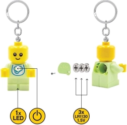 LEGO piekariņš mazulīša formā iepriecinās gan mazus, gan lielus fanus. Kompaktā minifigūriņas korpuss ir piestiprināts pie izturīga metāla gredzena un ķēdītes, tāpēc tas droši turēs atslēgas un vienlaikus kalpos kā praktisks LED lukturītis ikdienas situācijās.