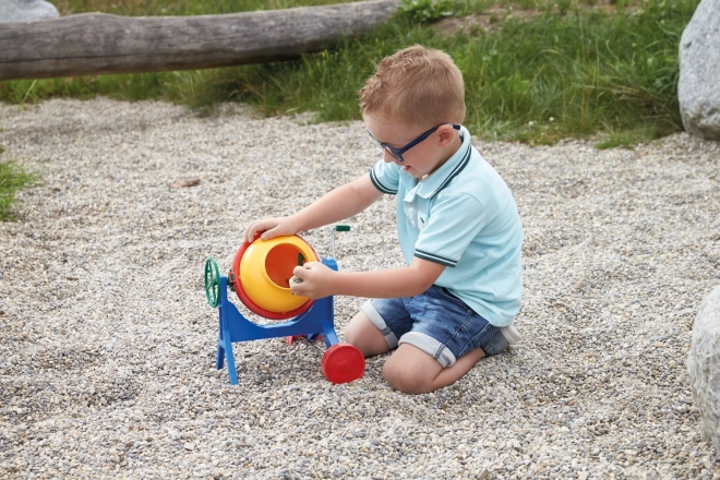 Šis košais bērnu mikseris uzticami atdarina īstu būvniecības iekārtu. Ar sānu kloķi var viegli griezt bungu un maisīt smiltis vai sīkus akmentiņus. Pateicoties stabilajam rāmim un gludajām malām, spēle ir droša un aizraujoša.