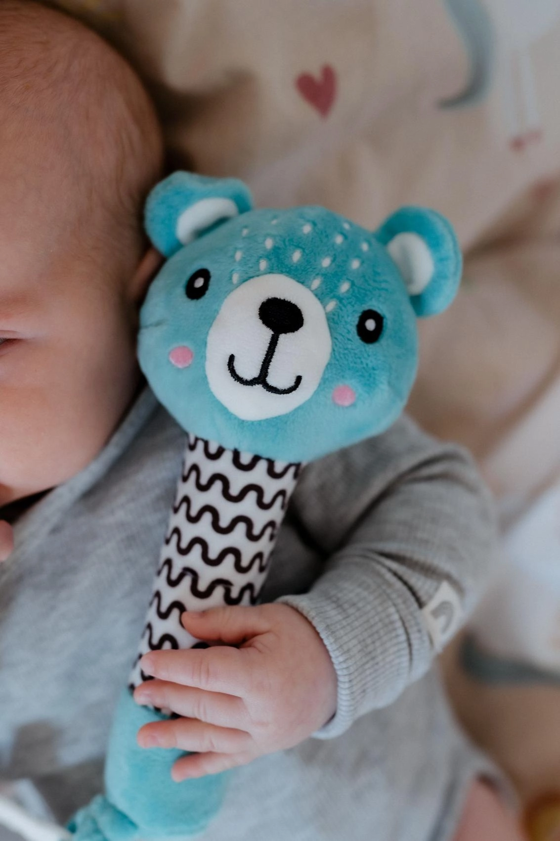 - Attīstības atbalsts: kontrastaini raksti redzes treniņam, smalkajai motorikai un koordinācijai