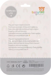 Viena segas mala ir papildināta ar mīkstu silikona košļājamo rotaļlietu, kas atvieglo jutīgas smaganas. Mezgliņi stūros ir viegli satverami mazām rociņām un veicina sīko motoriku. Produkts ir sertificēts Čehijā un atbilst drošības standartiem jaundzimušajiem.