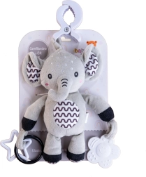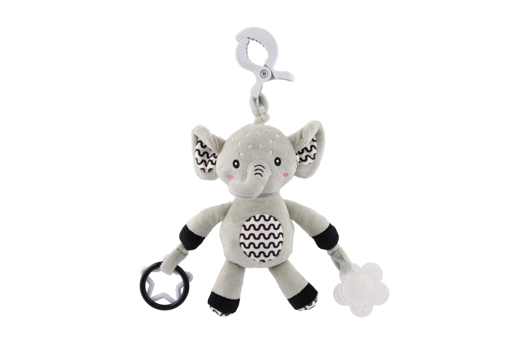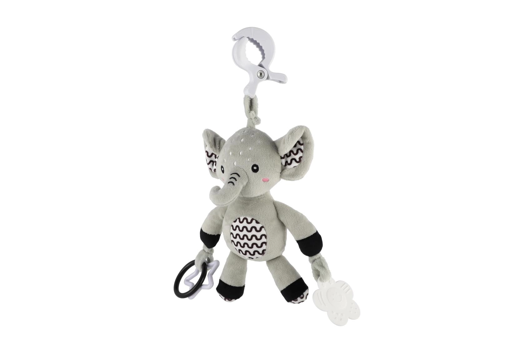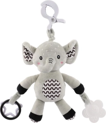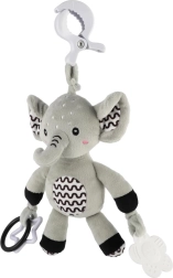 Mīļš ziloņa draugs pašiem mazākajiem no 0 mēnešiem. Pateicoties praktiskajam klipsim to viegli piestiprināt pie ratiņiem, gultiņas vai autokrēsliņa. Tas ir no maiga plīša, ar vieglu grabulīti, čaukstošām austiņām un drošu košļājamo riņķi smaganu nomierināšanai. Lieliski attīsta maņas, sīko motoriku un sagādā izklaidi mājās un ceļā.