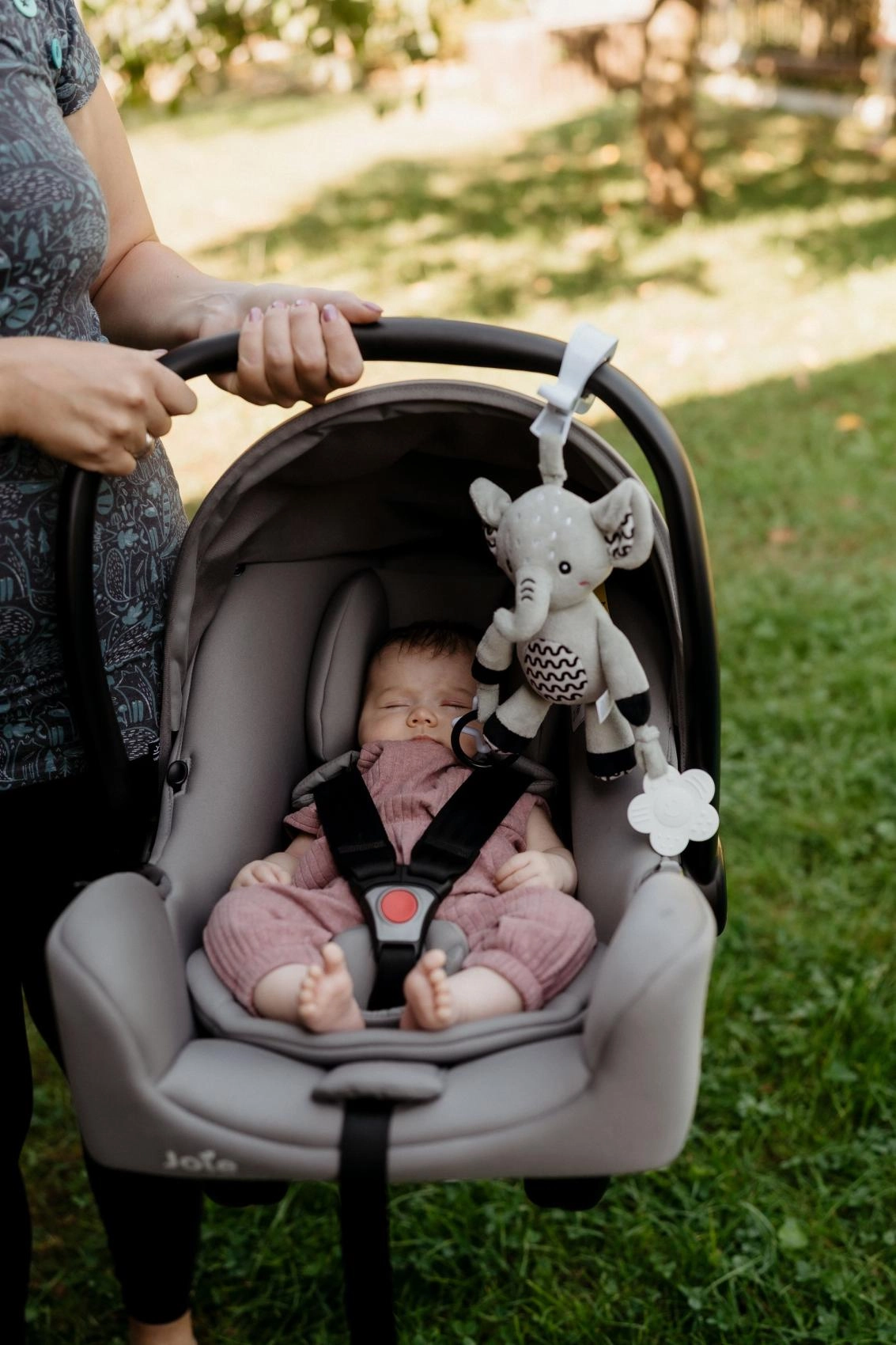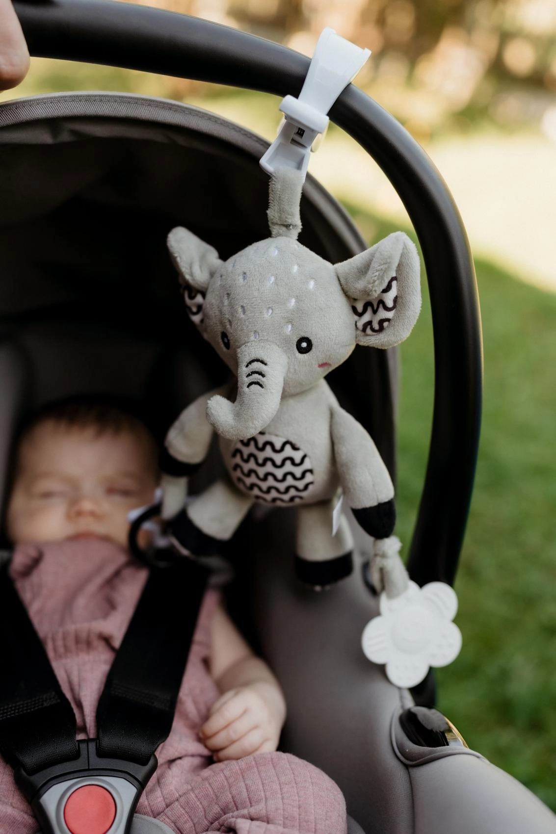 Dažu mirkļu laikā piestiprināsiet zilonīti pie ratiņiem, gultiņas vai autokrēsliņa roktura – ideāla izklaide ceļā un mājās.