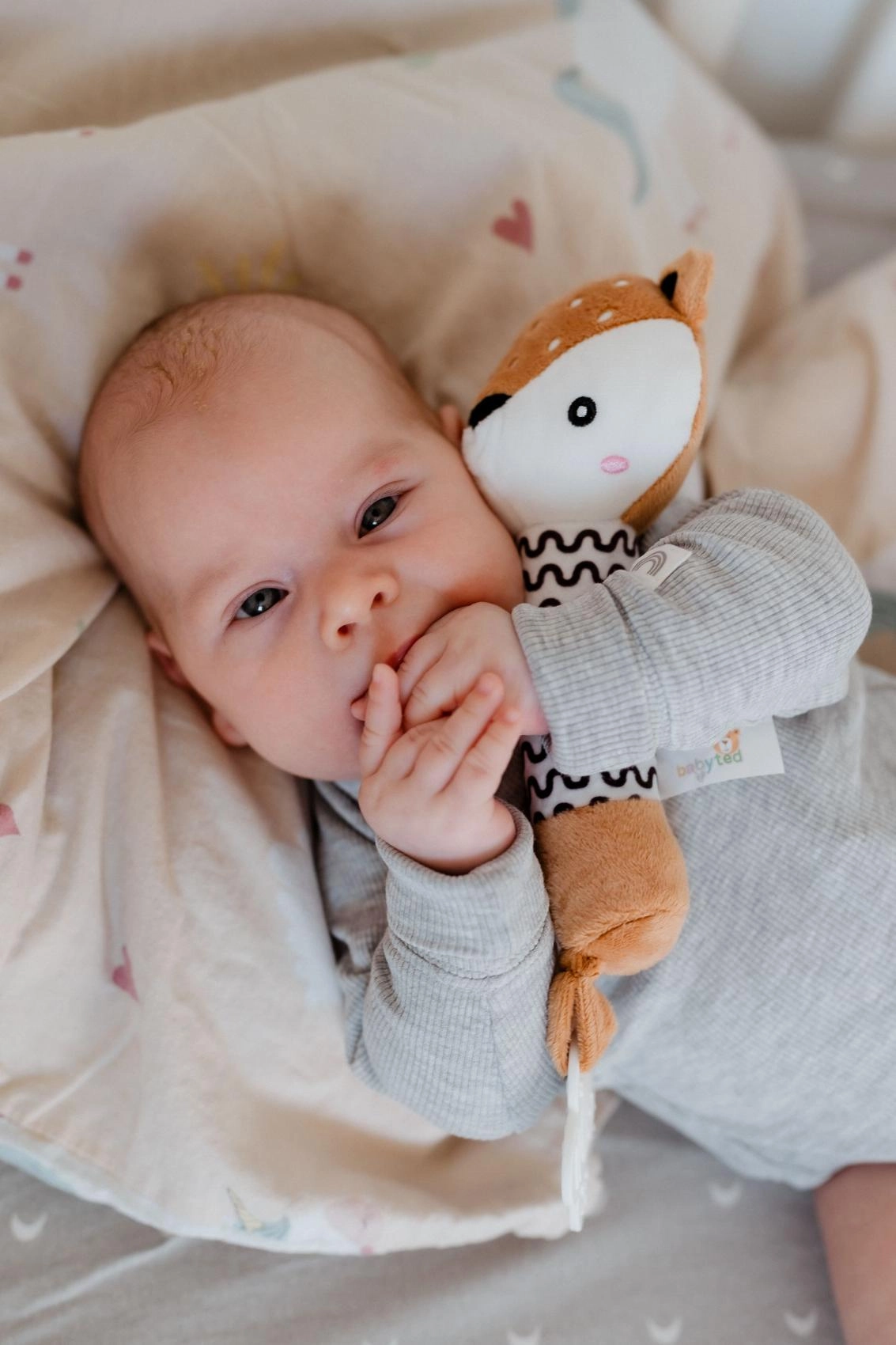Meklējat pirmo maņu rotaļlietu jaundzimušajam? Šis briedēns apvieno vienā pīkstuli, maigu graužamrīku un mīksto mantiņu. Garais, mīkstais ķermenītis lieliski der mazajām plaukstiņām un veicina satvērienu, savukārt pīkstiens saspiežot maigi stimulē dzirdi un dabisko ziņkāri.