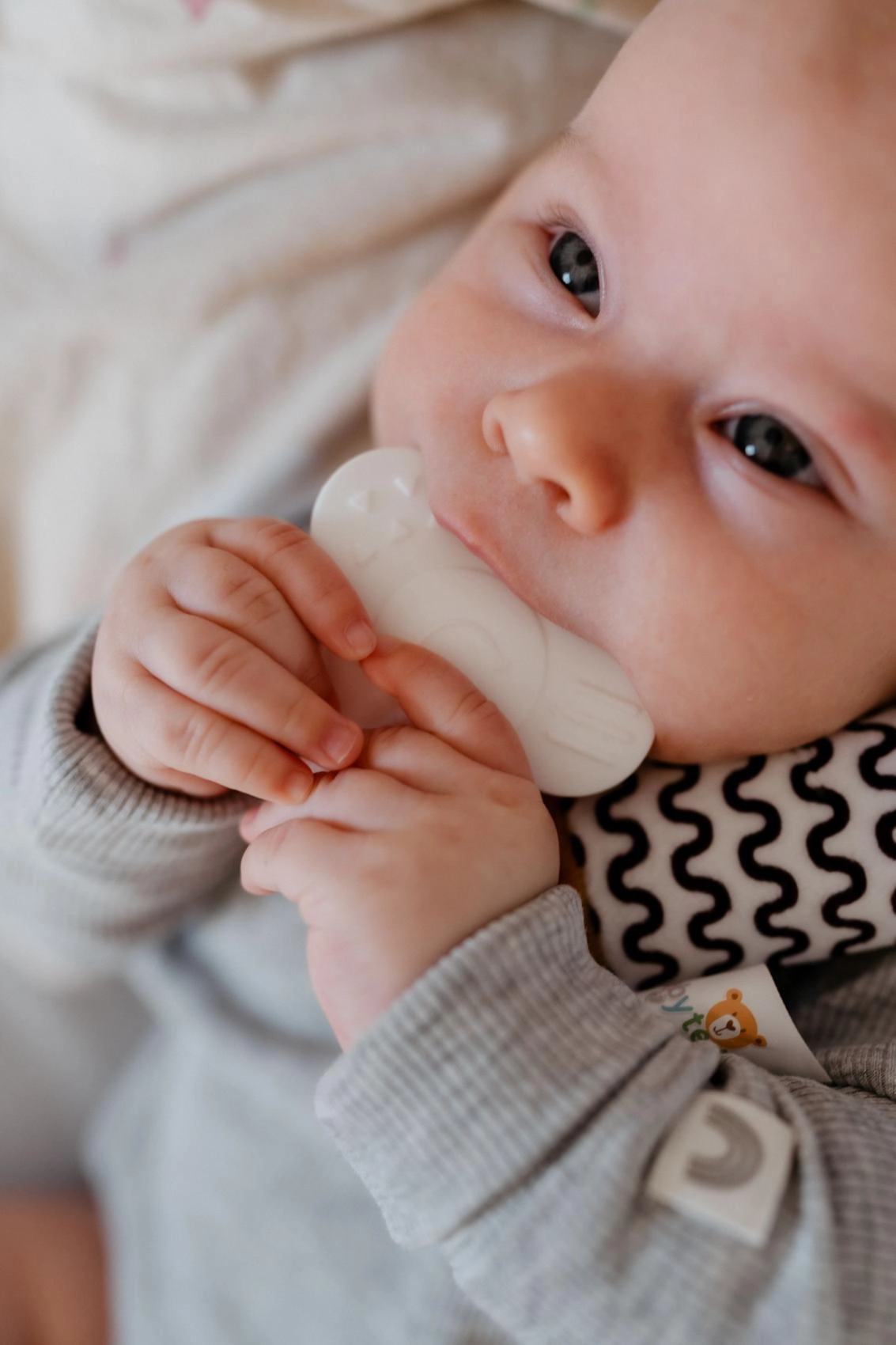 Mīkstais ziediņa formas graužamrīks maigi masē jutīgās smaganas un palīdz pirmo zobiņu šķilšanās laikā.