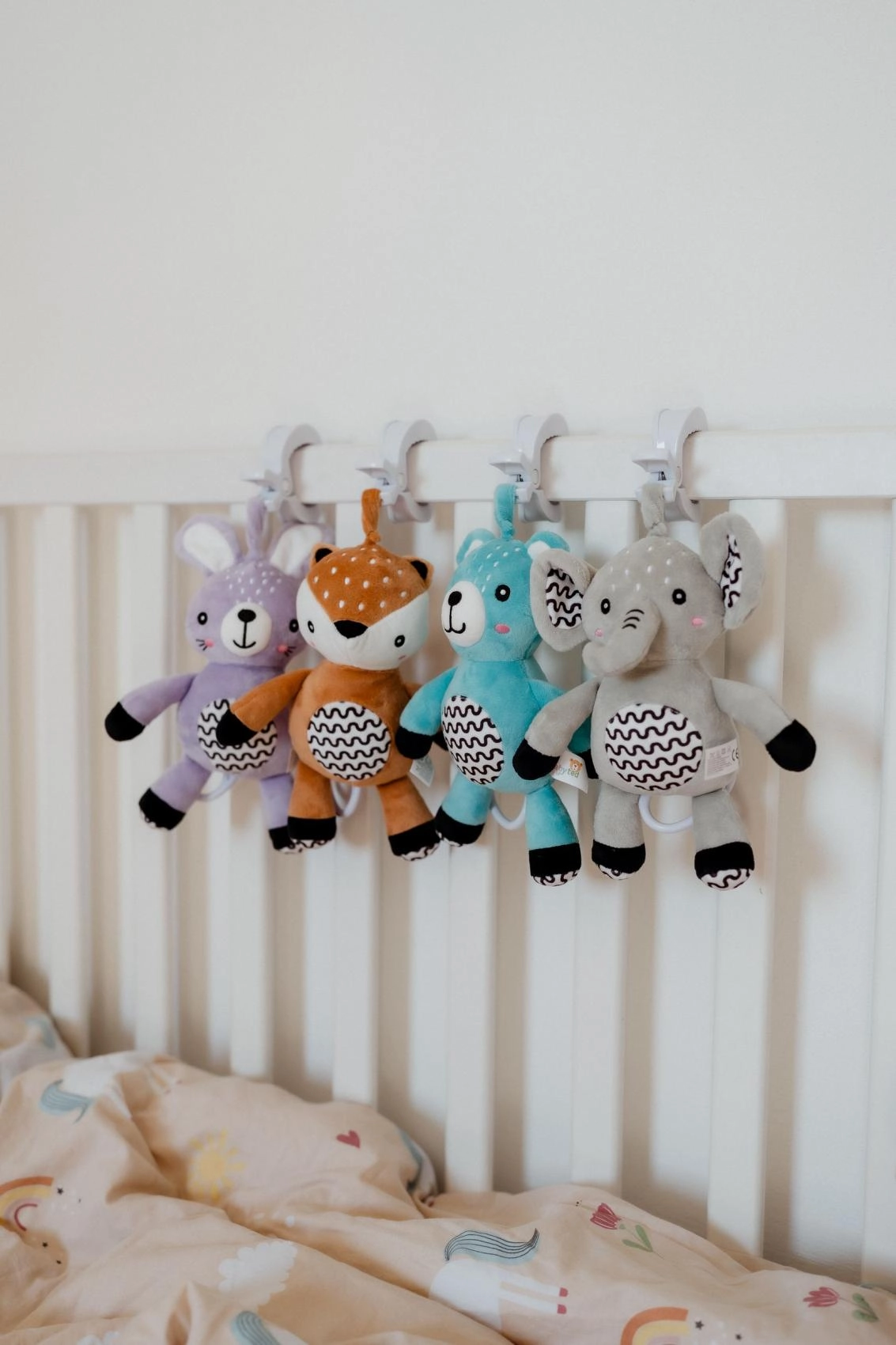 Praktiskais klipsis ļauj ātri piestiprināt zaķīti pie ratiņiem, gultiņas, autokrēsliņa vai aktivitāšu arkām – vienmēr pa rokai mājās un ceļā.