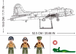 SLUBAN Model Bricks konstruktoru komplekts uzticami atveido leģendāro bumbvedēju BOEING B-17G, iesauktu par “Lidojošo cietoksni”. Pateicoties reālistiskām proporcijām un aptuveni 52 cm modeļa garumam, izceļas katra detaļa – no olīvzaļā krāsojuma ar Amerikas marķējumu līdz caurspīdīgajai kabīnei. Kvalitatīvs ABS plastmasas materiāls nodrošina stingru un izturīgu konstrukciju, kas piemērota gan spēlēšanai, gan izvietošanai plauktā.