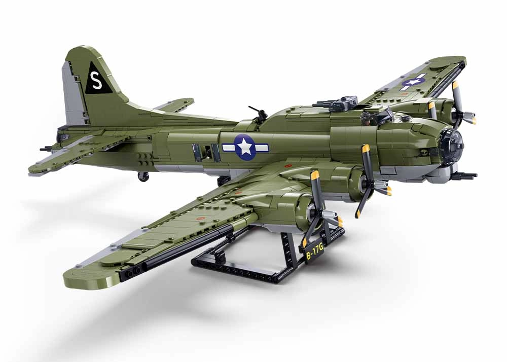 Modelim ir vairāki funkcionāli elementi: ievelkama šasija, rotējoši propelleri un kustīgas spārnu un augšējās stūres daļas, lai iestatītu lidojuma vai nosēšanās konfigurāciju. Komplektā ietilpst statīvs ar B-17G marķējumu un 3 minifigūras apkalpes locekļiem ar piederumiem. Konstruktoru komplekts ir saderīgs ar LEGO, Cobi un Mega Bloks, tāpēc modeli var viegli papildināt ar papildu elementiem.
