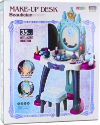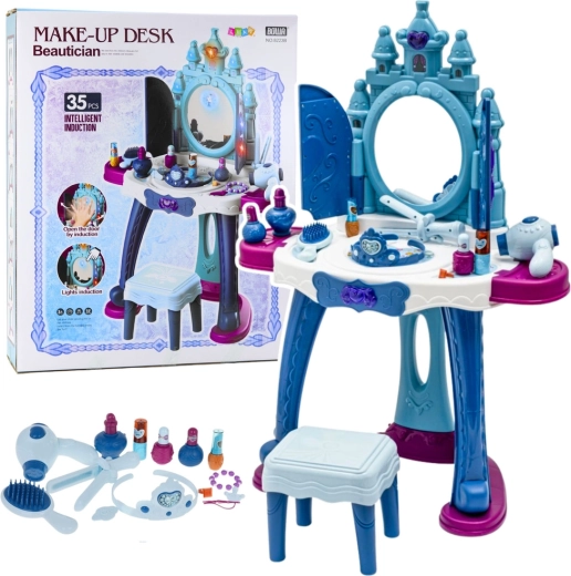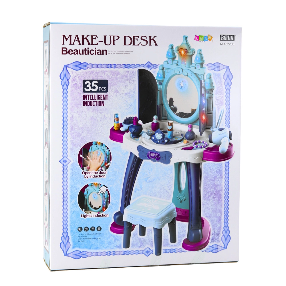 Interaktīvais Ledus princeses tualetes galdiņš bērniem rada īsta karaliskā buduāra noskaņu. Pietuvojoties atveras durtiņas un atklājas spogulis, uz kura parādās princeses tēli. Augšpusē, gar spoguļa malām un uz durtiņām izvietotās LED gaismiņas veido maigu apgaismojumu, savukārt maģiskās melodijas rosina iztēli un aicina spēlēties.
