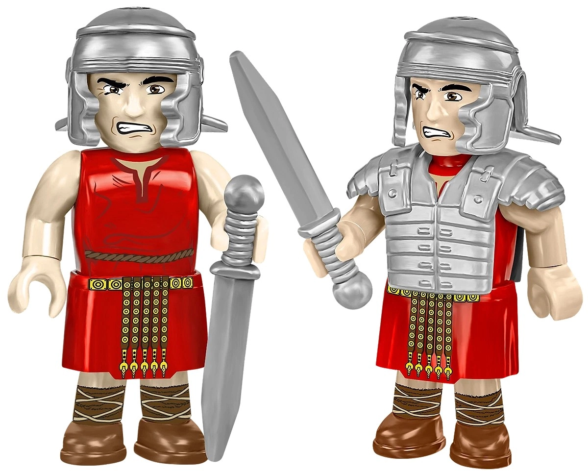 Ļaujiet leģionāriem ar scutum vairogu un gladius zobenu aizstāvēt nometni pret bruņotiem karotājiem. Noņemami piederumi un apdrukas atbalsta plašas spēles iespējas.