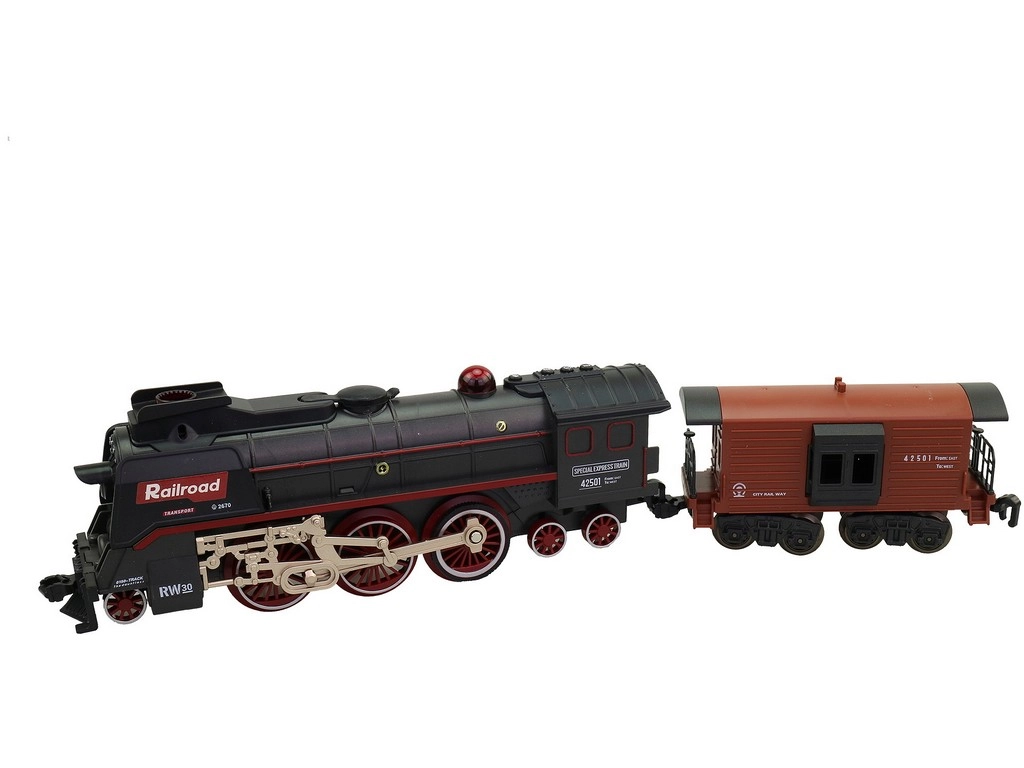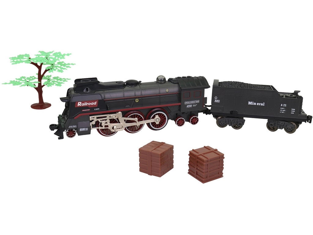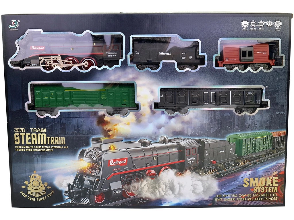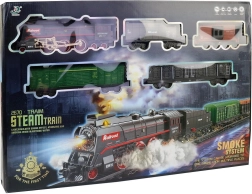 Šis tvaika vilciena komplekts bērniem sniedz autentisku brauciena pieredzi – no skursteņa un apakšdaļas izplūst reālistisks tvaiks, lokomotīve spīd un izdod tvaika vilciena skaņas. Pateicoties vieglajai sliežu montāžai, jūs dažu mirkļu laikā izveidosiet lielu ovālu trasi ar izmēriem 151 × 92,5 cm.