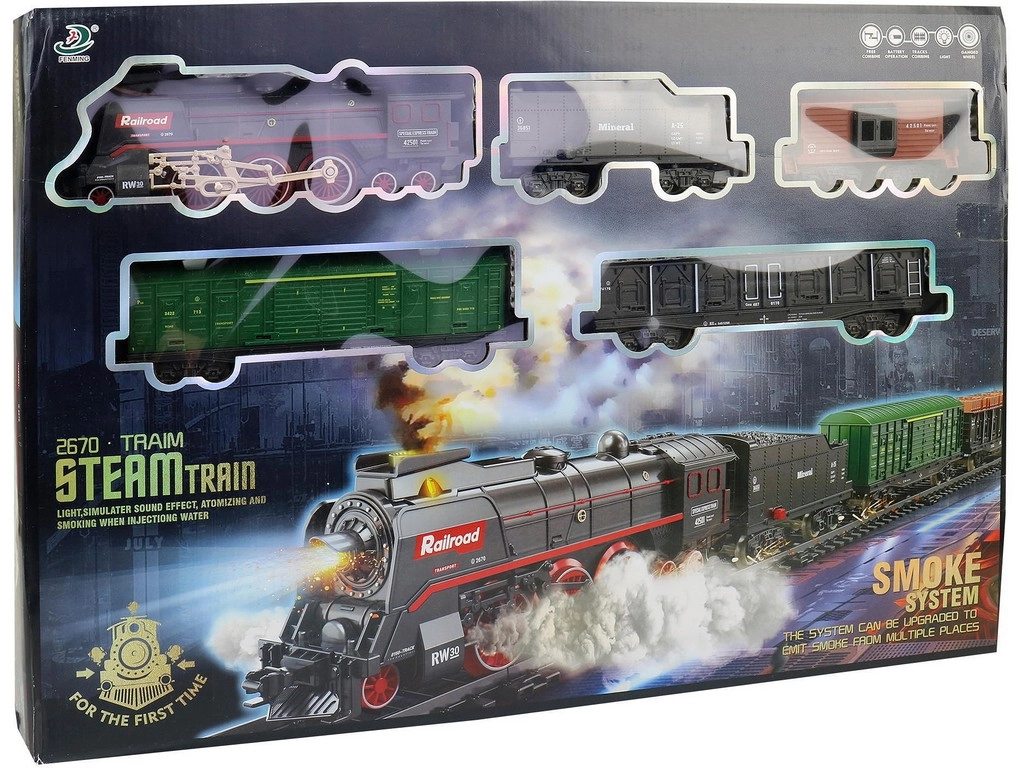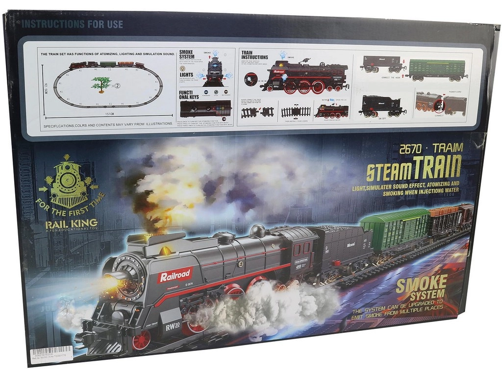 Ieprieciniet bērnus ar reālistisku baterijām darbināmu tvaika vilcienu, kas piedāvā īstam tvaika vilcienam līdzīgu tvaika efektu no skursteņa un apakšdaļas, gaismas un skaņas efektus, viegli saliekamu trasi un lielu 68 detaļu komplektu ar izmēriem līdz pat 151 × 92,5 cm. Ideāli radošām rotaļām un pirmajiem dzelzceļa piedzīvojumiem.