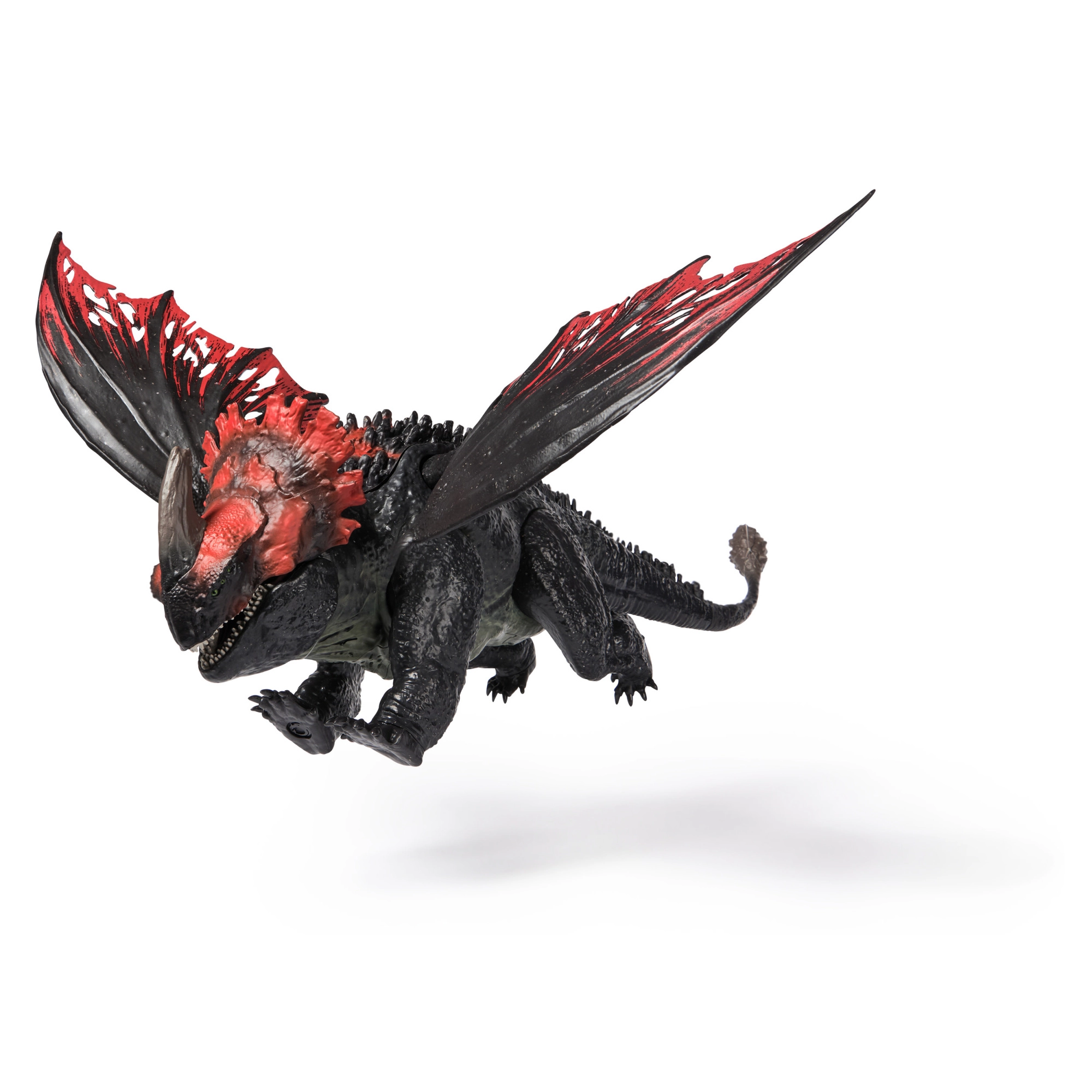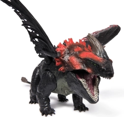 Milzīga pūķa figūra Titan Red Death no filmas HOW TO TRAIN YOUR DRAGON sniedz bērniem episku, dinamisku izklaidi. Pateicoties 58,5 cm garumam, izteiksmīgajiem sarkanajiem akcentiem, saplosītajiem spārniem un kustīgajiem spārniem, kājām un galvai, tā autentiski atdzīvina ainu no filmas. Nospiežot pogu, atskan biedējoši skaņas efekti, kas iedvesmo iztēli un lomu spēles.