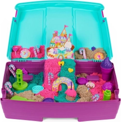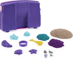 Unikālā Kinetic Sand tekstūra nodrošina, ka graudiņi pievelkas, tādēļ masa neizkliedējas pa telpu un veidojumi saglabā tīras malas. Bērni viegli izveidos pilis, torņus, gliemežvākus, jūras zvaigznes, bruņurupučus vai nāriņas. Komplekts piemērots bērniem no 3 gadu vecuma.